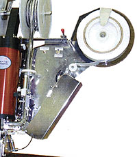 Auto tagger is attached to double clipper, feeds tags automatically into clip when cylinder is fired, tag is automatically fed into clip.