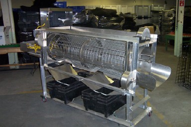 Sorts 3 sizes. Easy change sorting screens allow for numerous grading sizes.